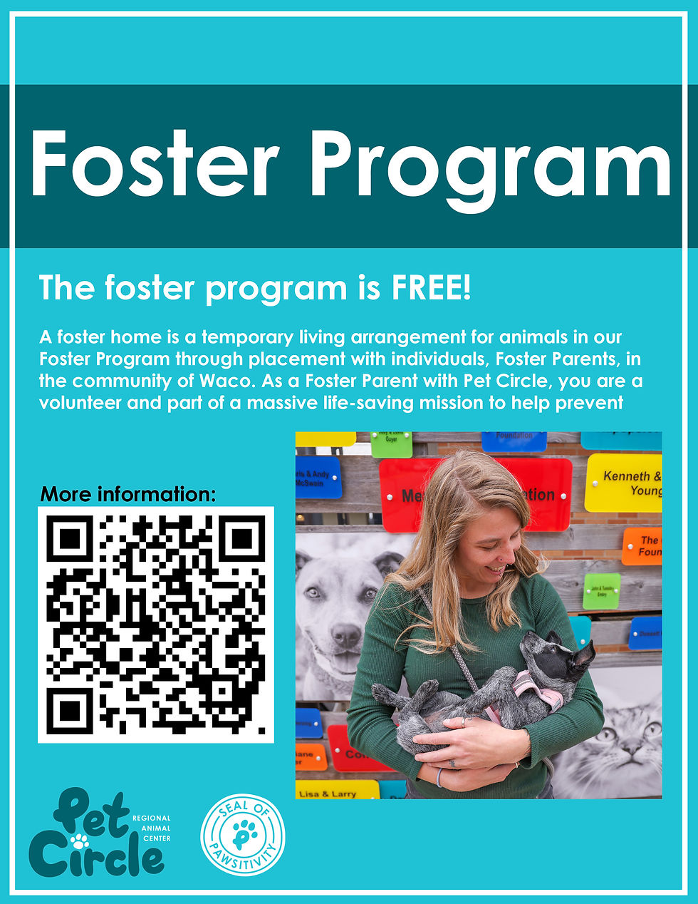 During my time at Pet Circle Regional Animal Shelter, I created numerous graphics for use on the City of Waco's official social media platforms, in newsletters, as physical prints, and on websites. Following the established brand guidelines, I created appealing and effective graphical designs for disseminating information quickly to a wide range of audiences. Below you can view some of the many projects and graphics I worked on.